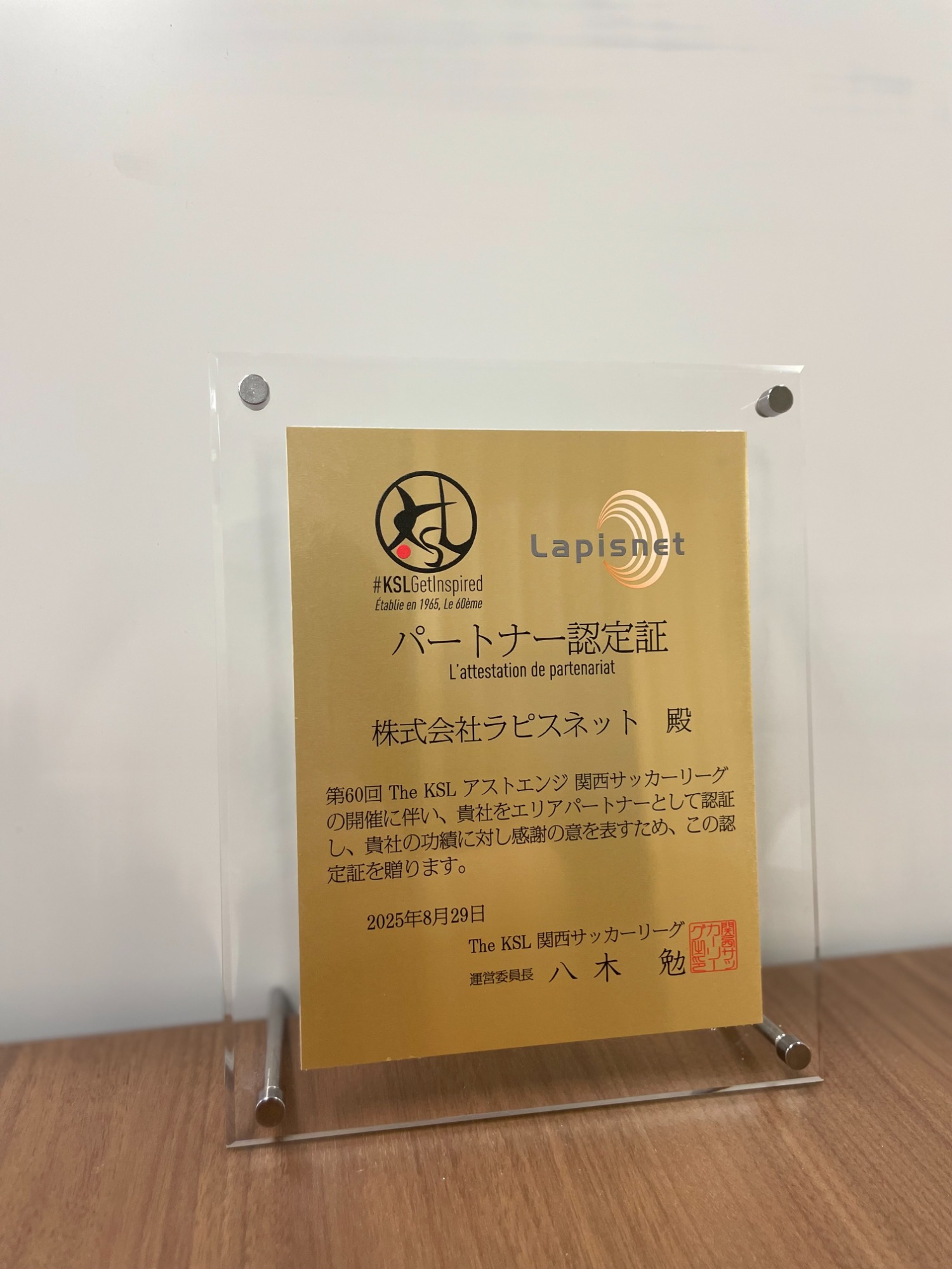 2025年9月1日、株式会社ラピスネットは日本サッカー協会の組織である『The KSL 関西サッカーリーグ』とエリアパートナー契約を締結いたしました。『The KSL 関西サッカーリーグ』は、各都道府県リーグから昇格した精鋭16チームで構成され、各チームはThe KSL アストエンジ Cup、全国社会人サッカー選手権大会等を勝ち抜き、JFL昇格を目標とします。その高みを目指す16チームがしのぎを削るこの舞台での、ひたむきな情熱と無限の可能性に深く共感し、今回のパートナーシップ締結に至りました。